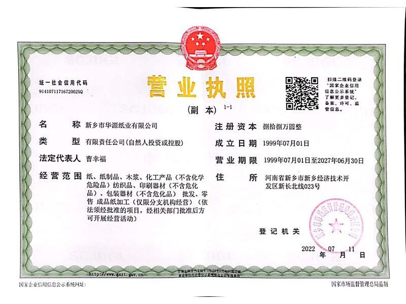 新鄉(xiāng)市華源紙業(yè)有限公司 一家主要經(jīng)營全木漿紙袋紙、牛皮紙、精制牛皮紙、精制復(fù)合原紙、全木漿美廢包裝紙、進(jìn)口白牛皮紙、本色牛皮紙、淋膜牛皮紙等系列產(chǎn)品的公司